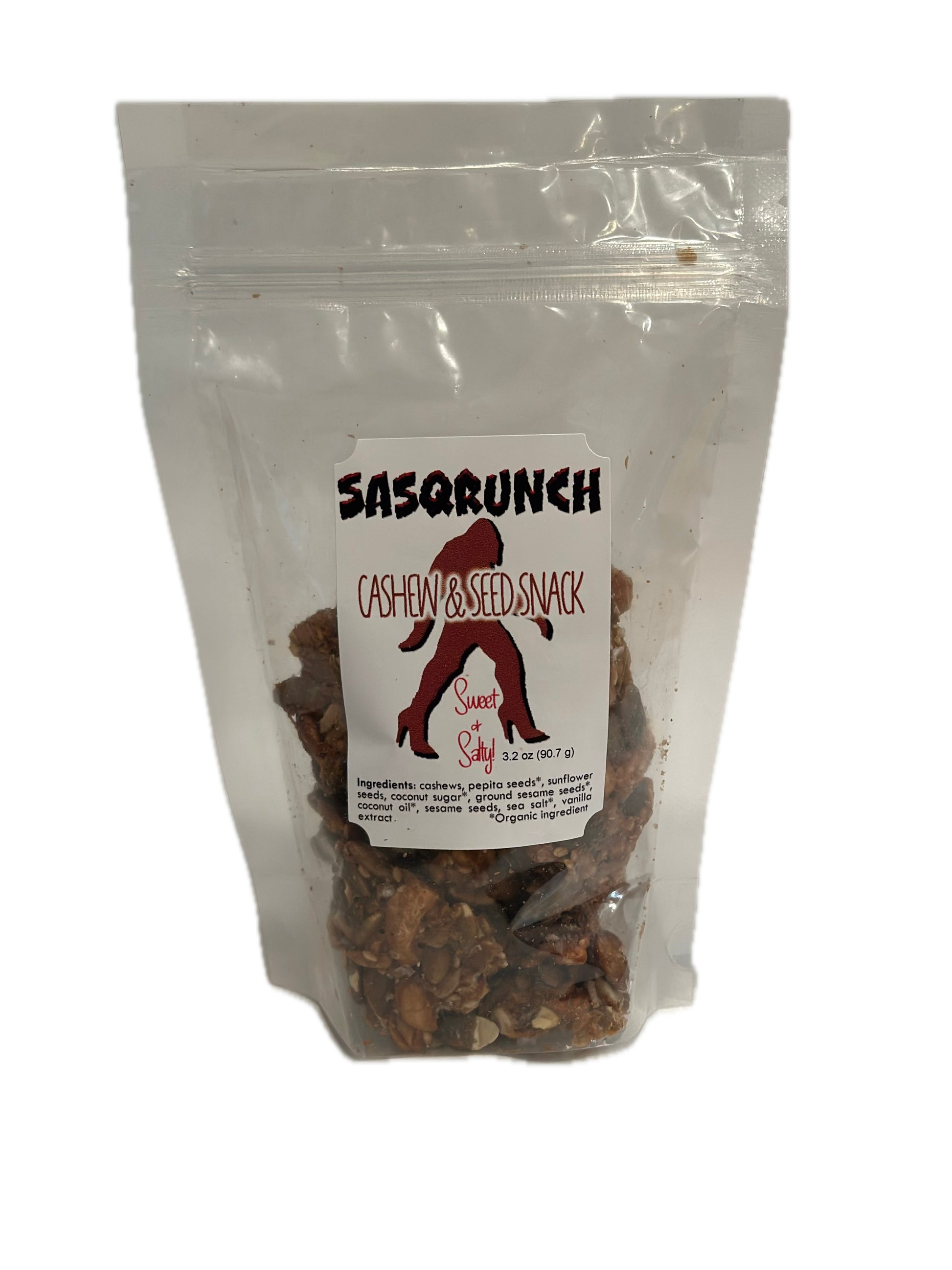 SasQrunch is a sweet and salty snack with cashews, seeds and organic coconut sugar. It’s full of protein and a great paleo treat!